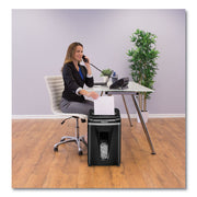 Provides ultimate protection with particles ten times smaller than standard cross-cut. Auto Reverse stops and reverses paper if a jam occurs. SilentShred™ offers ultra-quiet performance for shared workspaces. Holds over 80% more paper per gallon than standard cross-cut. Shreds 9 sheets per pass into 5/64” x 1/2” micro-cut particles (Security Level P-5), and has a 5.8-gallon pull-out bin. Maximum run time: 10 on/45 off. For 1 user.