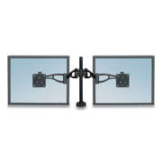 Fellowes Professional Series Depth Adjustable Dual Monitor Arm, 360 deg Rotation, 37 deg Tilt, 360 deg Pan, Black, Supports 24 lb