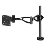 Fully adjustable for optimum viewing control. Easy to mount – clamp attaches to desktop or through grommet hole. Elevates LCD monitors from 3½” to 16½” above the desk. Minimum reach of 2½” to a maximum reach of 27”. Tilts up or down +/- 37° and freely swings left or right (360° rotation capability). Mounts to surfaces 1" to 3” thick or through grommet holes at least 3 1/4” in diameter; no tools required. Meets VESA mounting standards. Holds LCD monitor up to 24 lbs.