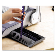 Fellowes Quasar Compact Binding System, high-performance binding machine allows user to punch and bind continuously for maximum productivity. Binds up to 500 sheets with a 2" comb. Vertical document loading ensures accurate punch alignment. Features built-in comb storage tray with document measurement device for added convenience and quick set-up. Enhanced accuracy edge guide for pinpoint punch alignment. Includes binding starter pack. Look for Fellowes coordinating binding accessories.