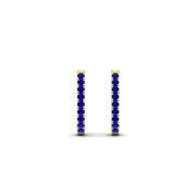 Accent Stone Types: Accent stone choices for the Fine Huggie Hoops are White Diamond, Blue Sapphire, Pink Sapphire, Green Emerald, Red Ruby, and Black Diamond.