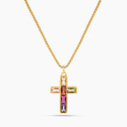 Brighten your style with the Fine Rainbow Cross Pendant. It features a sleek cross adorned with vibrant multi-colored CZ stones. Lightweight and durable, it’s perfect for everyday wear or layering.