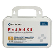 Convenient weatherproof case comes with a carrying handle. Case is easily wall mountable. Contents exceed the 2015 ANSI Class A requirements and are sufficient to treat up to 10 people.