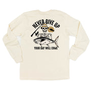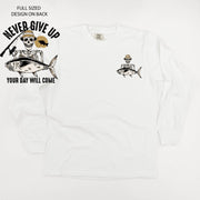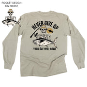 Fishing Skelly - Never Give Up (pf&b) - Long Sleeve Comfort Colors Tee
