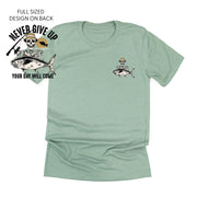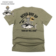 Fishing Skelly - Never Give Up (pf&b) - Unisex Tee
