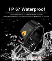 Stay connected to your health with the Fitness Smart Watch Activity Tracker, designed for men and women who want to monitor their wellness with ease and style. This sleek, lightweight tracker features a high-sensitivity 0.96” TFT touch screen, providing quick access to your steps, calories, distance, weather, and more. With its robust IP67 waterproof rating, this watch is built to withstand splashes and sweat, making it a comfortable companion for any activity.