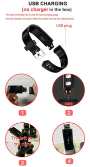 The watch provides comprehensive health monitoring with real-time heart rate and blood pressure monitoring using green light dynamics and photoelectric sensors. It also features multi-sport tracking for activities like walking, running, biking, and more, as well as automatic sleep monitoring to help you improve your rest. The watch vibrates for smart alerts, reminders, and auto-records your daily activity, while its 90mAh battery provides 1-2 days of use per charge. With a simple USB line charging (just remove the strap to plug in), and compatibility with both iOS and Android, this smartwatch makes wellness effortless.