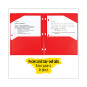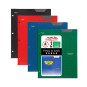 Arrange projects and subjects by color with this with-pocket folder. With stay-put tabs and a reinforced spine, you can organize and protect all of your school documents. Pockets, stay-put tabs and reinforced spine keep papers in place. Durable plastic is water-resistant and protects documents from accidental spills. Three-hole punched to store in your favorite Five Star® binder. Holds 8.5" x 11" sheets.