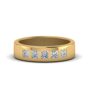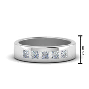 • Accent Stones: 5 accent stones of 0.20 ctw. with VS1 clarity and F-G color, and 2.5 mm width are arranged elegantly in a Flat Flush Set Mens Wedding Band.