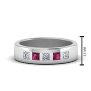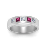• Accent Stone Types: Accent stone options for the Flat Flush Set Mens Wedding Band are White Diamond, Blue Sapphire, Pink Sapphire, Orange Sapphire, Red Ruby & Black Diamond.