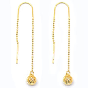 Crafted from high-quality 14K gold, the earrings feature a delicate and lightweight chain with shimmering Swarovski crystals that appear to be suspended in mid-air. The pull-through design allows the length of the earrings to be adjusted to suit individual preferences, making them perfect for both formal events and everyday wear.