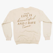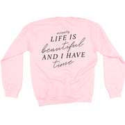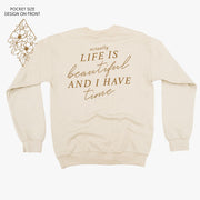 Flower Diamond (Pocket Front) w/ Actually Life is Beautiful and I Have Time (Back) - BASIC FLEECE CREWNECK