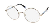 The frame is sold with demo lenses that have a logo stamped on them in ink. The frame can be fitted with real lenses at most optical stores. This frame provides comfortable fit and flatters a variety of face shapes. These eyeglasses are made of metal and high quality, durable acetate plastic. Original case is included. The glasses are made in China.