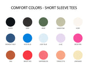 Comfort Colors tees are 100% cotton and are more structured than our regular tees. Sizing is unisex, but tends to run a bit larger. Pigment dye gives it a unique look and feel that gets softer with every wash.