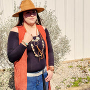 - The necklace adjusts from 24" to 30" by knotting leather at desired length.