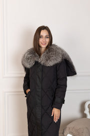 Genuine Silver Fox Fur Collar-Hood Down Winter Coat