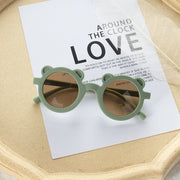 Girls Solid Color Cartoon Shape Round Frame Frosted Sunglasses