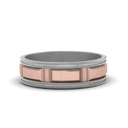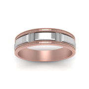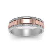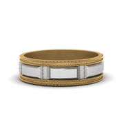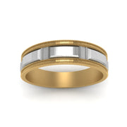 The Glossy Edge Band from Fascinating Diamonds features a two-tone wedding band design with a block-like pattern separated by small beaded details. This vintage-inspired milgrain band offers a modern yet timeless look.