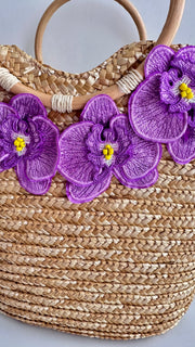 Make a statement this summer with our "Goddess in Lilac" natural straw beach bag, where fashion meets nature, and let the lilac orchids bloom as your perfect accessory!