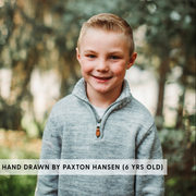Paxton Hansen's passion for dinosaurs began when he was four years old. After many hours of practice (and a lot of crumpled up papers in frustration) he has mastered the art of sketching realistic dinosaurs. He hand drew this design (and many others) with no help from mom and without looking at anything. He spends about 2-3 hours each day drawing pictures in hopes of fulfilling his dream of being an artist one day. Proceeds from this product go toward Paxton's college fund and also fresh copy paper and pens to fuel his passion..