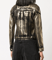 Description: The Madison Maison Denim Jacket in Gold and Black is a denim jacket with gold foil overlay foiling.