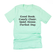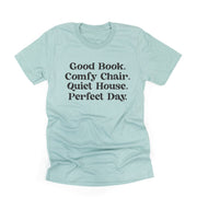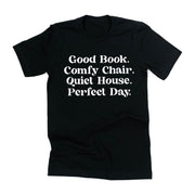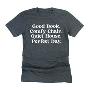 Good Book. Comfy Chair. Quiet House. Perfect Day. - Unisex Tee