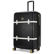 Stand out with this retro suitcase by Badgley Mischka. Embellished with accent hardware, vegan leather straps, and featuring eight spinner wheels, an expandable brushed polycarbonate-ABS body, this trunk will provide a distinctive and practical touch to your trip.