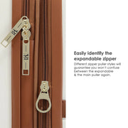 - Expandable body with differentiated zipper pullers for hassle-free additional packing capacity.