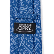 Add a touch of Nashville charm to your look with this Grand Ole Opry Musical Blue Tie. Featuring an allover pattern of playful musical instruments and notes, this tie is perfect for anyone who loves music or wants to stand out with a stylish twist. The rich blue color with lighter blue designs makes it easy to pair with suits or dress shirts for work, weddings, or nights out.