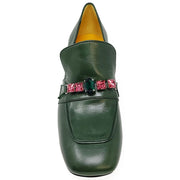 Discover timeless elegance with this leather mid-heel loafer, showcasing a graceful 55mm (approximately 2.2 inches) heel that delivers both comfort and sophistication. Intricate jeweled detailing elevates the design, while premium leather construction guarantees lasting quality and a refined aesthetic. Perfect for professional environments or upscale casual occasions, this versatile loafer seamlessly transitions from day to evening wear with understated luxury.