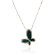 Green Malachite w/ 18k Gold & Cubic Zirconia Butterfly Necklace Jewelry