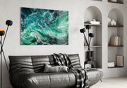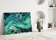 Green Waves Glass Wall Art