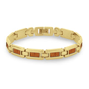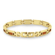 Ladies Yellow Gold plated stainless steel link bracelet with Australian Gum Burl (Tasmanian Oak/Stringybark) inlays. Links are removable to adjust for size.