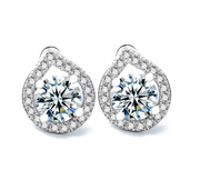 Halo Crystal Stud Tear Drop Earrings in 14K white gold