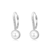 Halo Cultured Pearl Leverback Earrings in 18K White Gold