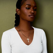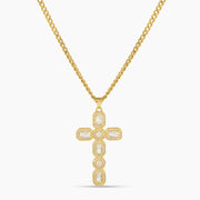 Enhance your style with the Halo CZ Cross Pendant, a beautiful symbol of faith featuring a cross with sparkling CZ stones in a halo design. Durable and timeless, it's perfect for daily wear or special occasions.