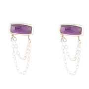 Hammered Purple Amethyst and Sterling Silver Stud Earrings