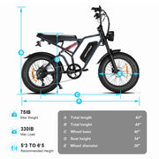 Powered by a formidable 750W motor (with a peak power of 1500W) and equipped with robust 20-inch fat tires, this electric moped bike delivers unmatched performance, stability, and endurance for even the toughest terrains.