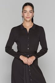 Made with high quality ribbed knit, our Harlow Dress exudes sophistication. The classy chiffon ruffle on the bottom adds a touch of elegance while the included belt allows for a tailored fit. Finished with a button down design, this dress is perfect for any dressy occasion.