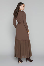 Made with high quality ribbed knit, our Harlow Dress exudes sophistication. The classy chiffon ruffle on the bottom adds a touch of elegance while the included belt allows for a tailored fit. Finished with a button down design, this dress is perfect for any dressy occasion.