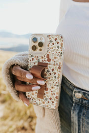Case Design: Beige background with maroon and brown florals