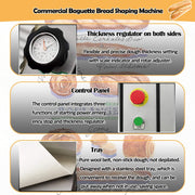 What makes this baguette shaper a must-have for any serious bakery? It's all in the precision engineering! The machine features adjustable rollers that allow you to control the thickness and length of your dough, ensuring every single baguette meets your exact specifications. The non-stick surface prevents dough from tearing, preserving its delicate structure for a perfect rise and bake. This means you get consistent, artisanal-quality results batch after batch, boosting your output without sacrificing quality.