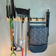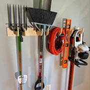 Holds 4 rakes, shovels, brooms, etc. + 3 misc. hooks -