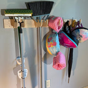Holds 2 shovels, brooms, etc. + 2 misc. hooks