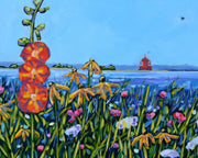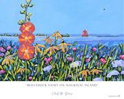 "Hollyhock Views on Mackinac Island" Flower Print on Paper, Wood Panel - Wall Art Home Decor