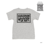 Home School Is Cool -- Our Classroom Is Wherever We Are (pf & b) - Child Tee