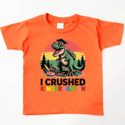 I Crushed Kindergarten T-Rex Dinosaur Graduation T-Shirt for Kids