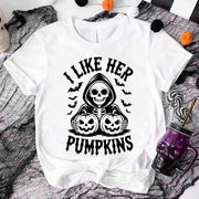 I Like Her Pumpkins & His Broomstick Shirts | Funny Matching Halloween Couple T-Shirts