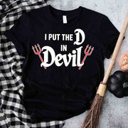 ✨ Wickedly Funny – I Put the D in Devil Couples Halloween Tees 😈🔥