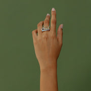 Add a touch of royal flair to every ensemble with our Iced Crown Name Ring. Designed in a bold modern font, it's a testament to your regal presence. Update your jewelry collection with this custom ring, where personalized sophistication meets dazzling brilliance in a design fit for royalty. Choose from ring sizes 4 to 14 for an ideal fit. Add a touch of royal elegance to your ensemble with our exquisite Iced Crown Name Ring.